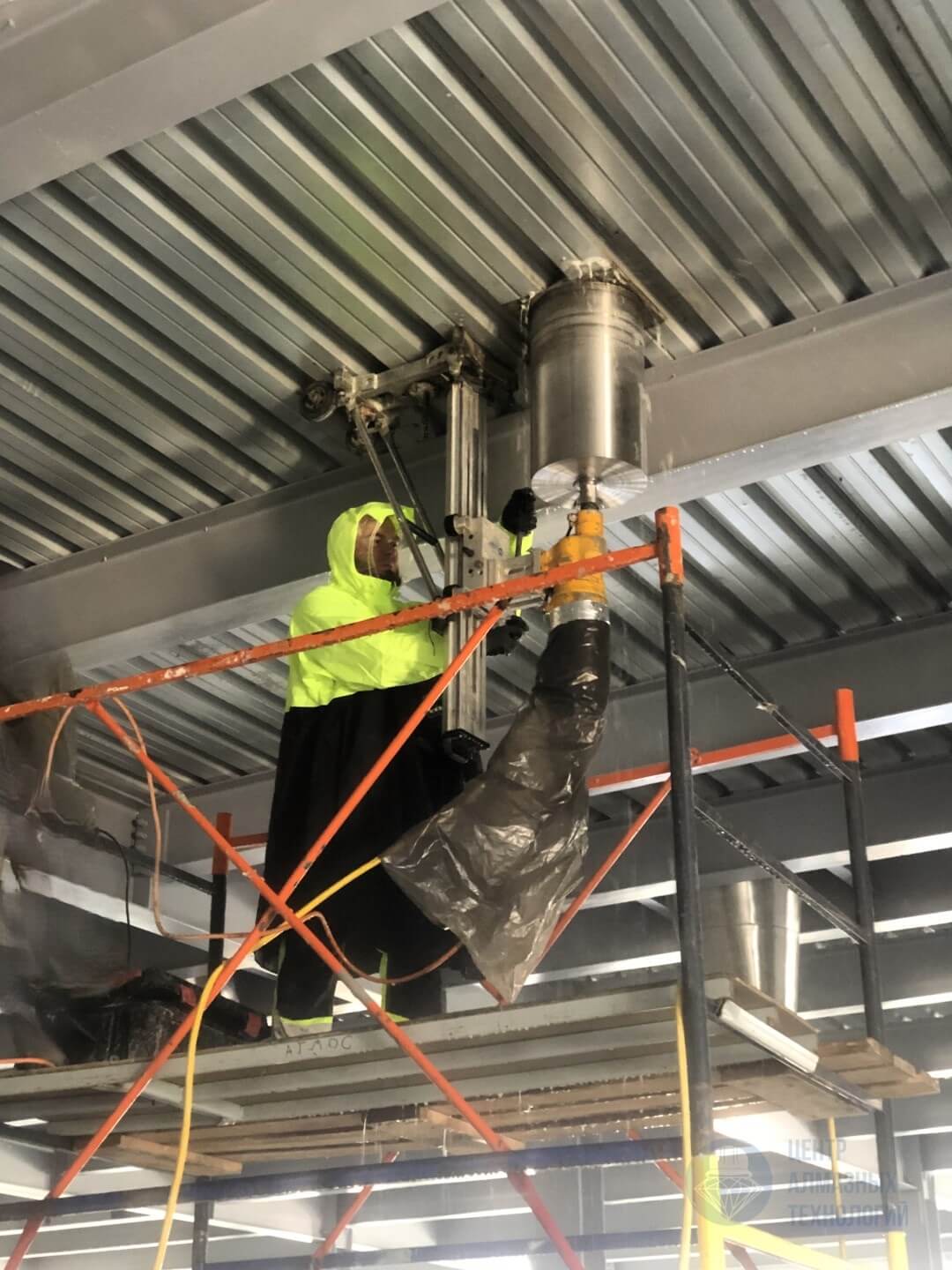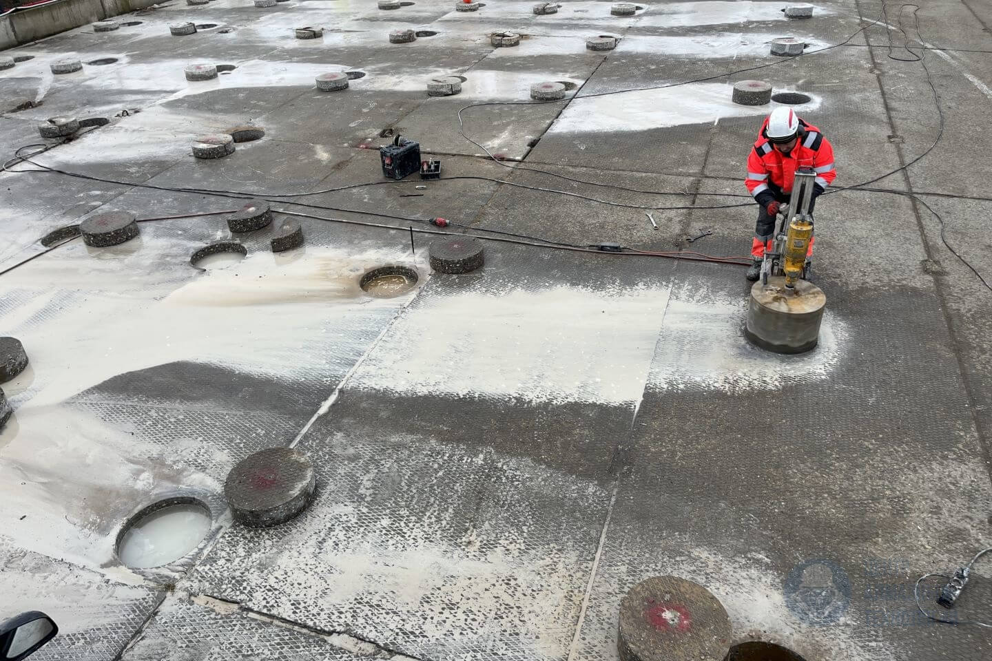 - При работе в помещениях с финишной отделкой мы применяем водосборную систему, а при необходимости провести алмазное сверление отверстий «на сухую», т.е. абсолютно без воды — системы пылеудаления;