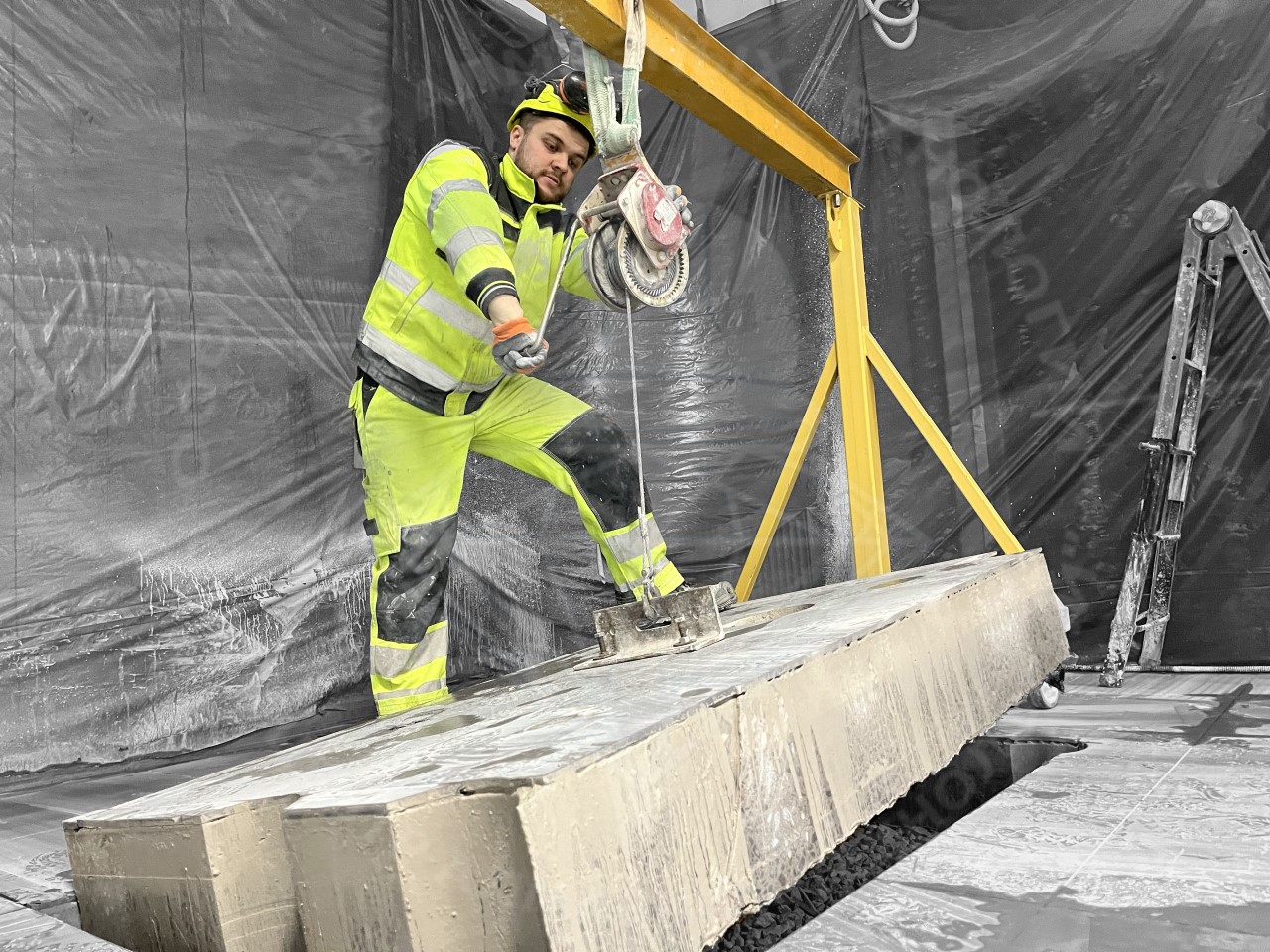 - изъятие бетона из отверстия по периметру (выполняется постепенно, сначала одна сторона, потом – вторая);